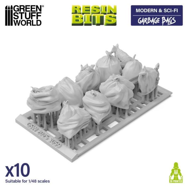 Give your bases, dioramas, wargames, and miniatures dirty touch with these high-quality resin Trash Bags! Carefully designed to mimic actual trash and miscellaneous debris, they come in different shapes and sizes to accommodate different modeling scales. This product comes unpainted and is perfect for 32-54 mm miniatures (1:48, 1:35).