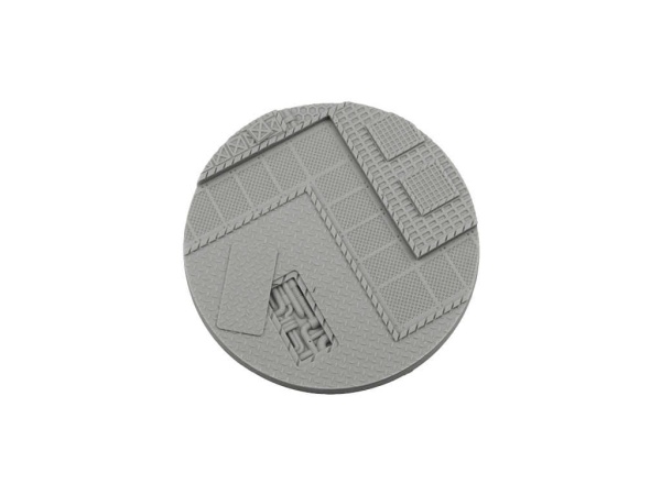 One high quality resin 90mm round base of Tech pattern.