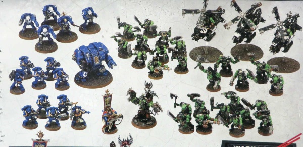 Modelle aus Plastik von Games Workshop. Modelle aus der Black Reach Starterbox im Gussrahmen. 1 normaler Orkboy fehlt! Transfer Sheet, Templates, Würfel und Maßstäbe sind auch dabei.