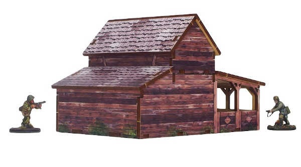Multicolor prepainted (UV-printed) WW2 Ostfront (East Front) Village Workshop is a farm building with accessible interiors and removable roofs. Room to fit in a small infantry squad inside. Option to assemble with open or closed doors.