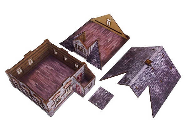 Multicolor prepainted (UV-printed) WW2 Ostfront (East Front) Village Dacha (house) ia a building with accessible colorful interior and removable roof. Room to fit in the whole infantry squad inside. Pre-cut acrylic transparent window panes included. Option to assemble with open or closed doors.