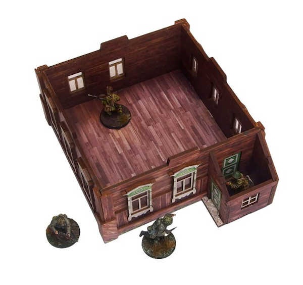 Multicolor prepainted (UV-printed) WW2 Ostfront (East Front) Village Dacha (house) ia a building with accessible colorful interior and removable roof. Room to fit in the whole infantry squad inside. Pre-cut acrylic transparent window panes included. Option to assemble with open or closed doors.
