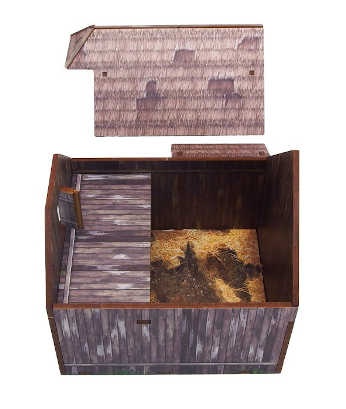 Multicolor prepainted (UV-printed) WW2 Ostfront (East Front) Village Barn is a farm building with accessible colorful interior and removable roof. Room to fit in the whole infantry squad inside. Option to assemble with open or closed doors.