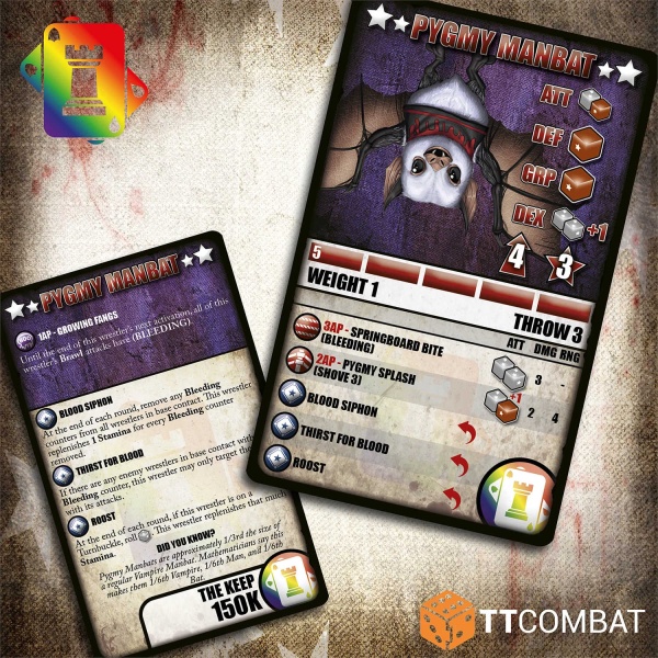 The darkest shadows of the Keep have revealed a new generation of Vampiric wrestling talent! Combining seductive glances and adorable figures like the Pigmy Manbat, the Sanguine Smackdown are rapidly becoming fan favourites.