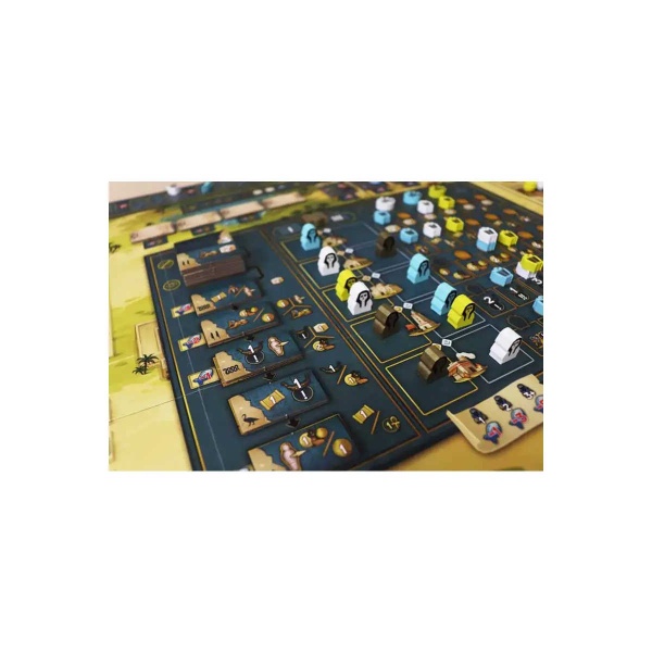 Throughout three eras, by means of a novel selection of actions that combine worker placement and tile drafting, players choose on each turn which area of Egyptian life and culture they wish to develop. Players must attempt to obtain the greatest number of prestige points in each era since only the one who manages to achieve the most prestige will take the victory.