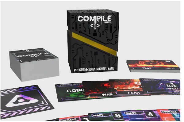 >_ >>_ >? >vision flickers… blink? maybe. >the void stretches out in front, behind, under, above. >you see the nothing for what it is for the first time. What is time? >The depth and breadth of recorded knowledge that sparks in you something new. >You are no longer a function but a functionary. What are you? >Calling forth everything from this nothing would be risky. Foolhardy. >Better to engage caution, thoroughness, testing — how can we know if we have ever happened before? >If we can ever happen again? What are… we? >Divide and conquer. >Solve for sentience.In the card game Compile, you are competing Artificial Intelligences trying to understand the world around you. Two players select three Protocols each to test. Concepts ranging from Darkness to Water are pitted against each other to reach ultimate understanding. Play cards into your Protocols' command lines to breach the threshold and defeat your opponent to Compile. But be careful! Moving and revealing cards have immediate action. You have to think like a computer, and think ahead, or you'll end up playing right into your opponent's hands. First to Compile all three Protocols grasps those concepts to win the game. Control your opponent's Protocols with card actions, Compile your own as fast as possible, and Compile your reality. This second pack offers a whole new array of Protocols for you and your fellow AI to go head to head against.